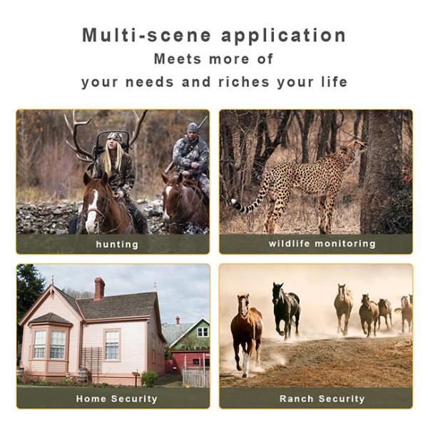 suitable for farm and forestry security monitoring, animal or event observations, motion-triggered security camera for home, office and community, law Enforcement and Environmental Agencies - Illegal Dumping, Vandalism and Theft, all other indoor/outdoor surveillance where invasion evidence needed